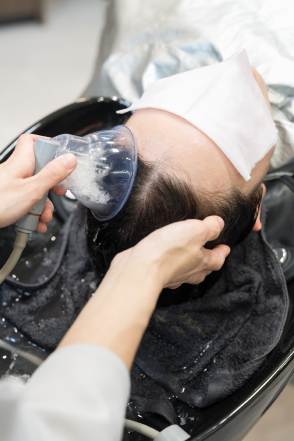 より本格的な頭皮ケアはサロンでの施術がおすすめです。頭皮ケアには、プレミアムコース(90分)、スペシャルコース(60分)、スカルプクレンジングコース(45分)があり、いずれのコースも、マイクロスコープによるヘアチェックをしてからスタート。炭酸温水浴や専用のヘッドスパリフトで頭皮の血行促進やマッサージができます。