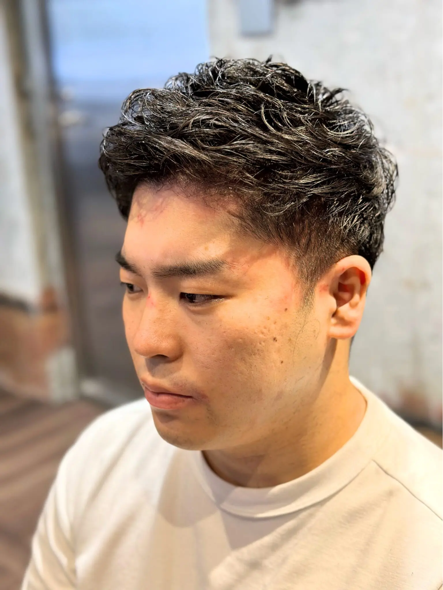額全体が均等に薄くなったり後退したりする | ニュアンスパーマ スパイクショート |