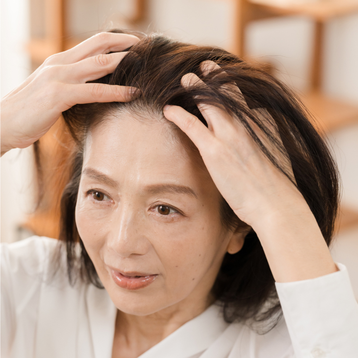 「細毛や薄毛になると髪が頭皮に張り付いて、どうしても骨格が強調されます。するとほうれい線やしわが目立って“老け見え”の原因にも。気がついたらすぐに頭皮のお手入れをはじめましょう」と、SAKIさん。