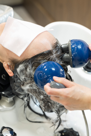 より本格的な頭皮ケアはサロンでの施術がおすすめです。頭皮ケアには、プレミアムコース(90分)、スペシャルコース(60分)、スカルプクレンジングコース(45分)があり、いずれのコースも、マイクロスコープによるヘアチェックをしてからスタート。炭酸温水浴や専用のヘッドスパリフトで頭皮の血行促進やマッサージができます。