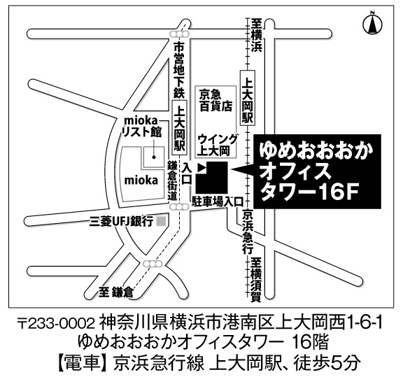 - 神奈川県横浜市港南区上大岡西1-6-1 ゆめおおおかオフィスタワー16F