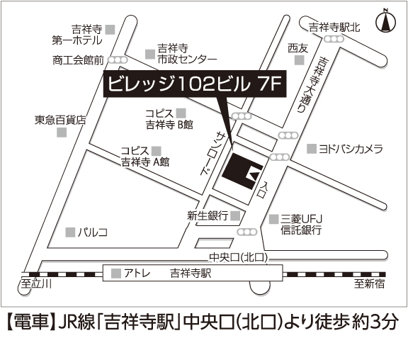 - 東京都武蔵野市吉祥寺本町1-14-8 ビレッジ102ビル7F