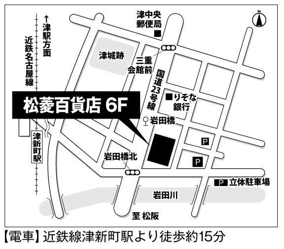 - 三重県津市東丸之内4-10 松菱百貨店6F