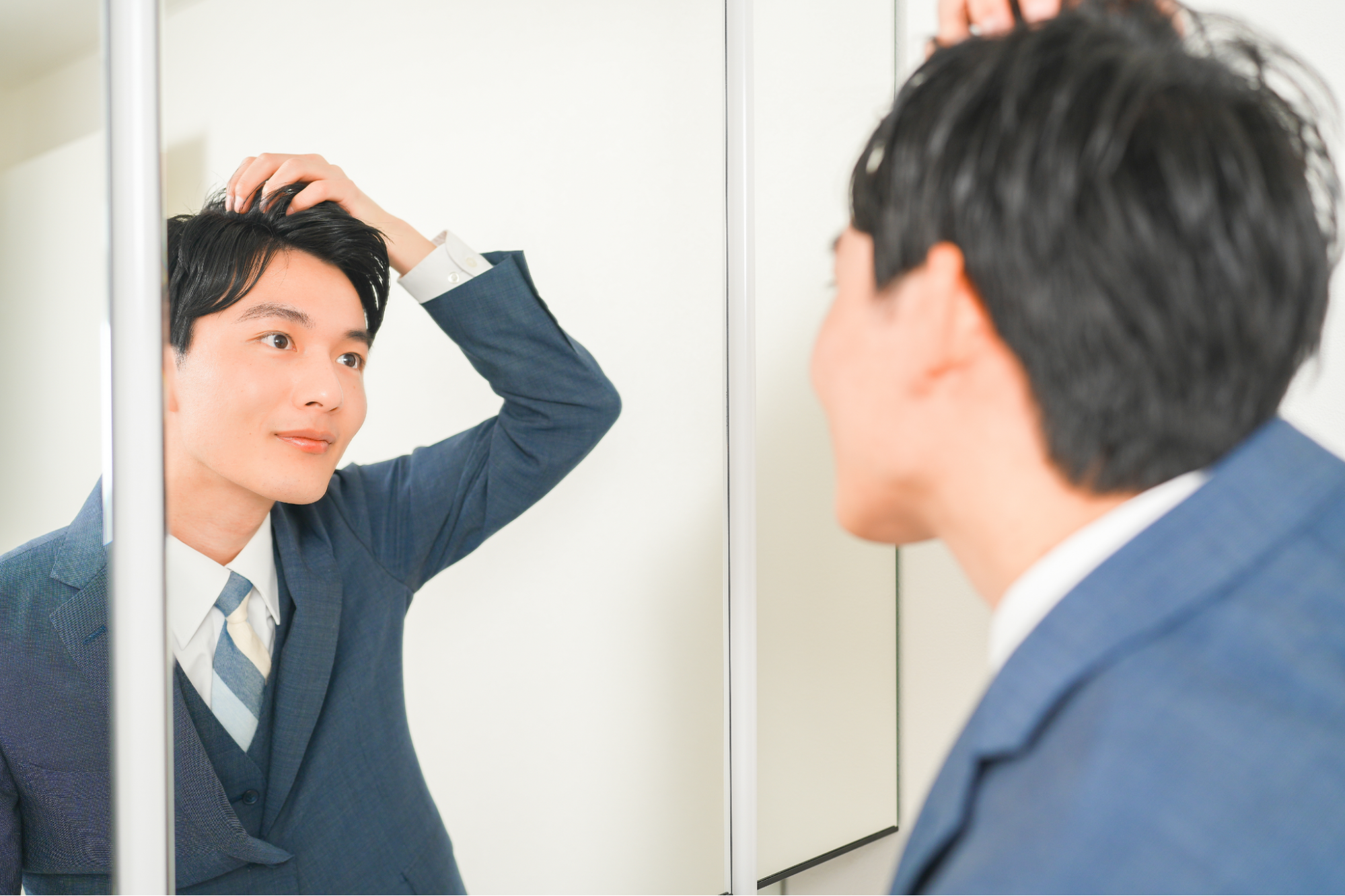 きちんとセットされた髪型は、薄毛である・無いにかかわらず相手に好印象を与えます。男性の多くはショートカットですが、髪が伸びると不必要なところにボリュームが出たり、髪型が崩れたりして、だらしのない雰囲気になるので注意が必要です。