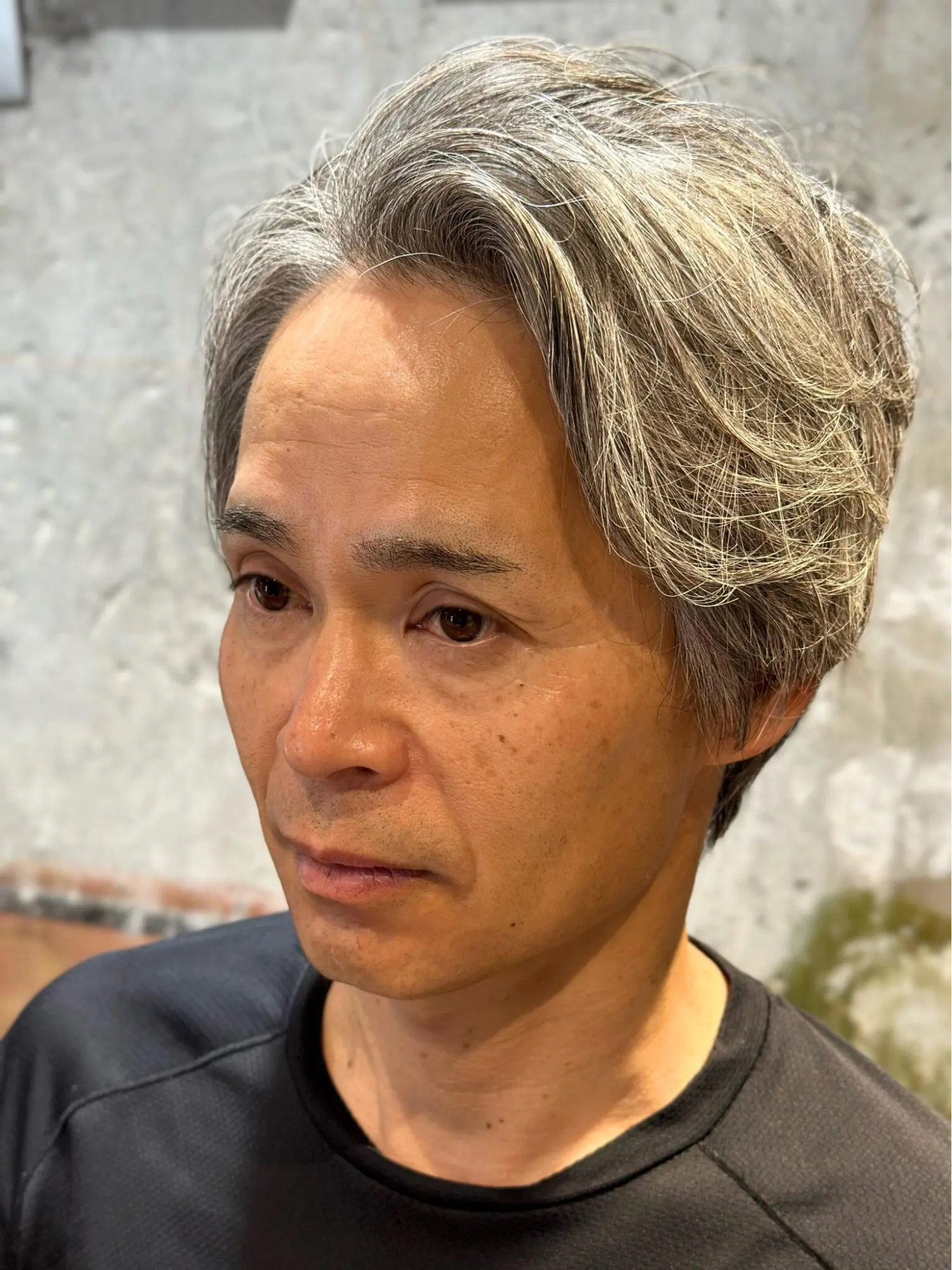 前髪が立ち上がっている髪型も、薄毛の人に似合う髪型です。