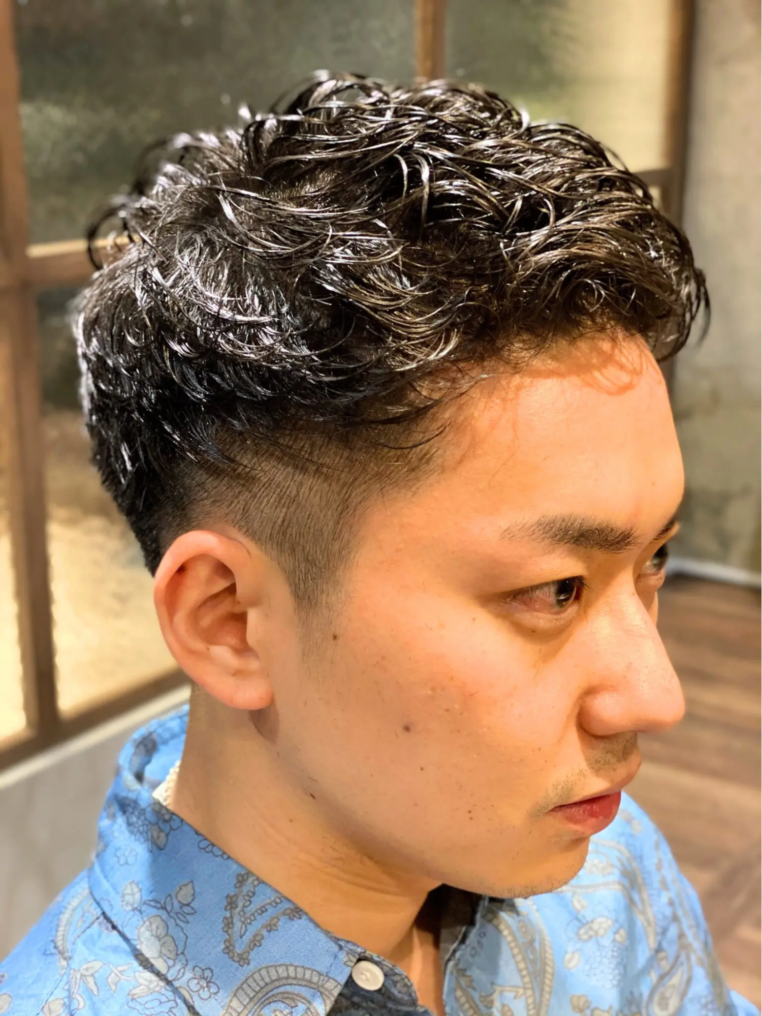 額全体が均等に薄くなったり後退したりする | ニュアンスパーマ スパイクショート |