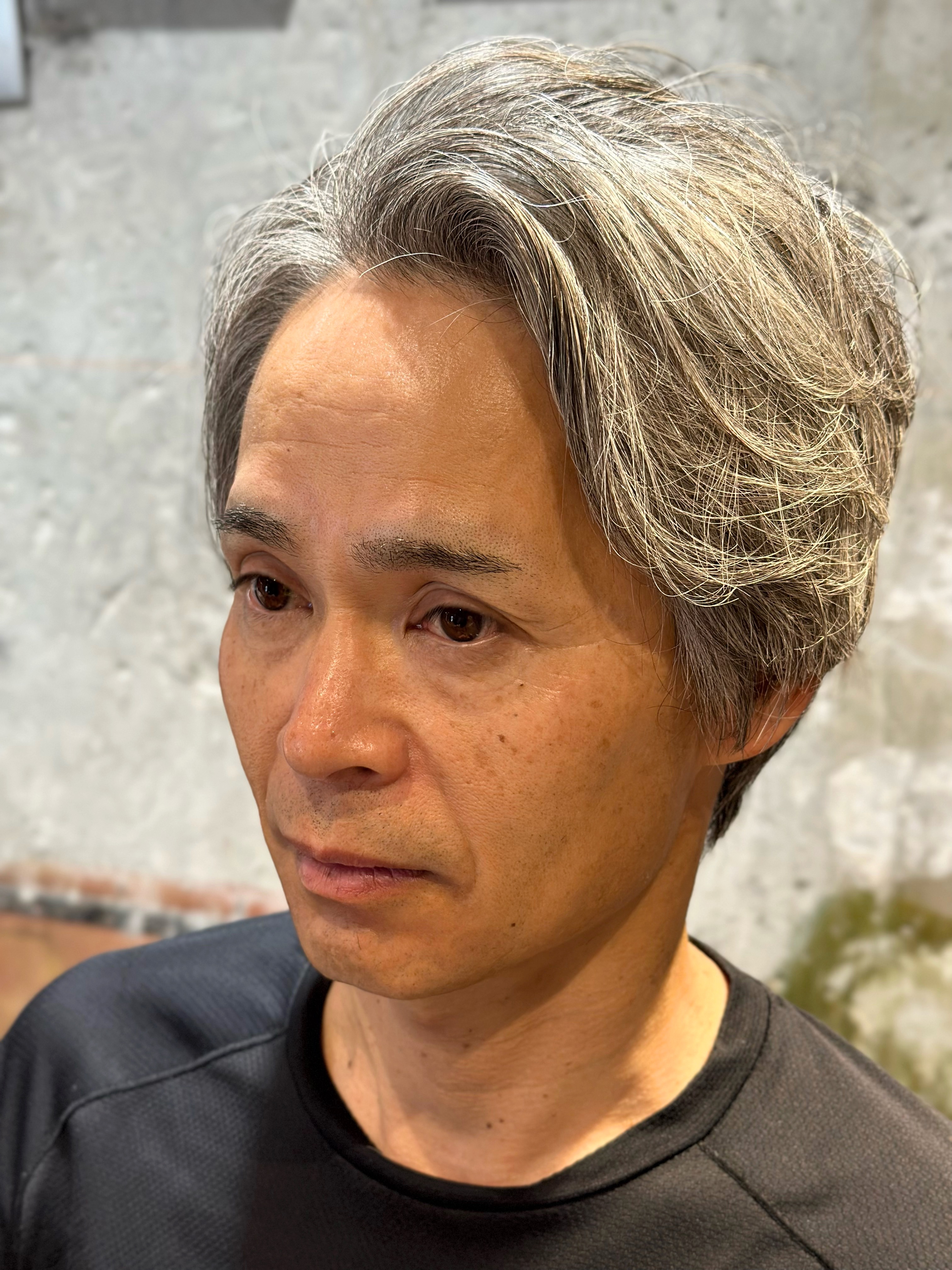 また白髪まじりの髪にパーマをかけると白髪の部分がハイライトの役割を果たすため、立体的なヘアスタイルになります。